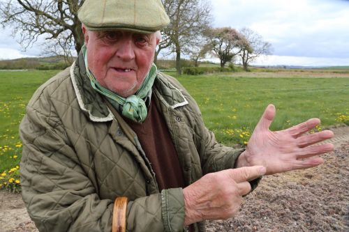 "Pipe's blown", he begins. "Water from that house at the top of the hill's coming up in this field. It needs to all go into this pipe which feeds the drain at the bottom of the hill then it goes into Bulmer Beck and eventually the River Derwent. It's no good stood in me fields."