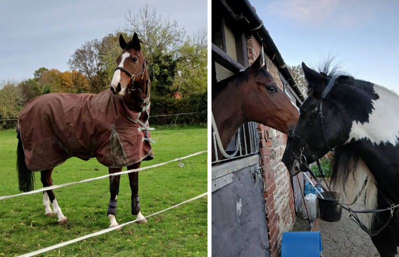 His new best pal is a big cob called Duke, a very different sort of companion to what he's been used to amongst the racehorses here at New House Farm.