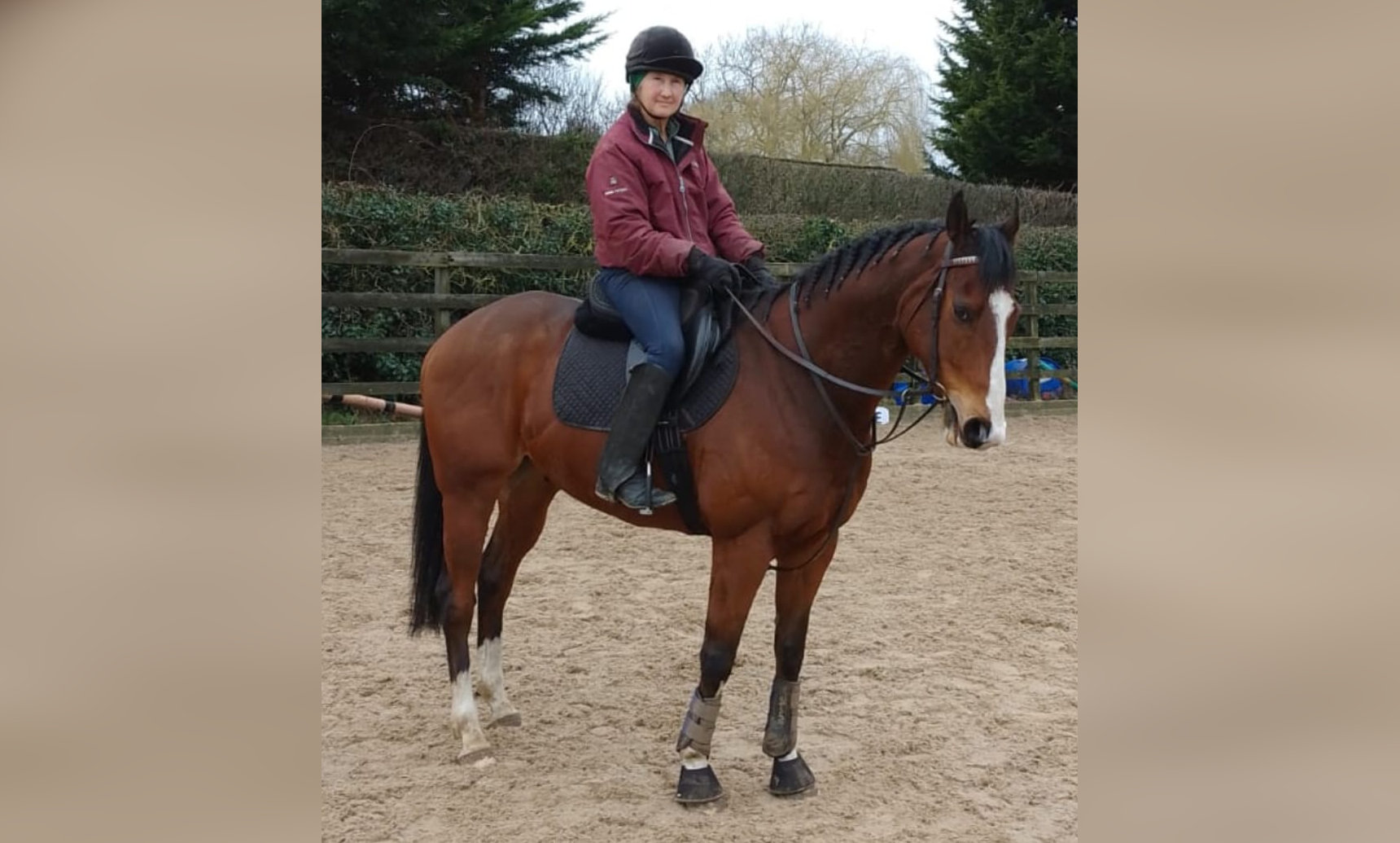 "Refuge (Rafa) is back in work after four months down time," says Hazel. "The weather has been rubbish but he's wintered well and loves being turned out. He was really good but definitely has a cheeky character. Love him."