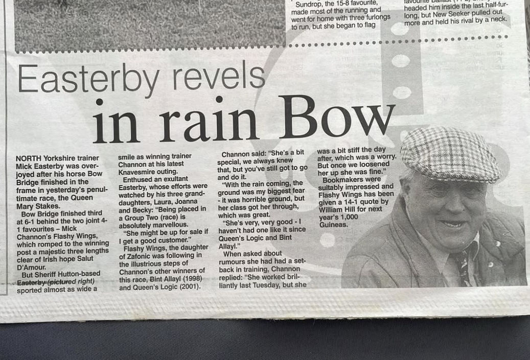 Bow Bridge was foaled in 2003, sired by Bertolini out of the three times winning Shalford mare Bow Peep. Bow Peep's other foals failed to win a race but Bow Peep was somewhat of an exception.