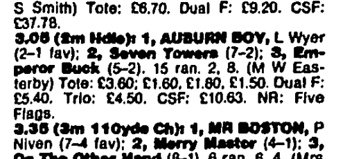 Auburn Boy made his debut at Catterick in 1993. He won hurdles races at Wetherby, Newcastle and Stratford. He was sold to Ian Williams in 1997 and won first time out for his new trainer in a claimer at Newton Abbot.