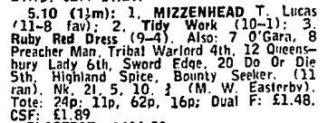 Mizzenhead made his debut over hurdles at Stockton in January 1980 where he gave a suggestion of ability by finishing 6th of 16 runners but he didn't see the two miles out properly. I decided to drop him back in trip on the flat and found a little race, again at Stockton, where he came in fifth. A few weeks later he showed a great deal of improvement and finished runner up at Hamilton Park under my marvellous stable jockey Terry Lucas. He was second favourite that day but was outpointed by a 29/1 outsider trained by Gordon Richards.