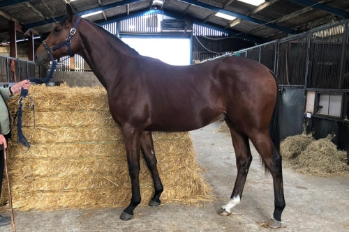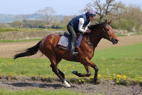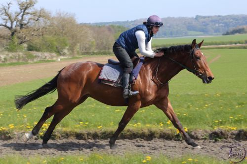 A smart bay gelding by Estidhkaar out of Viva Diva, this lad didn't make the track and was rehomed to Anna. Now named 'Danny' he is currently loving life hunting. And he's taken to it like a duck to water.